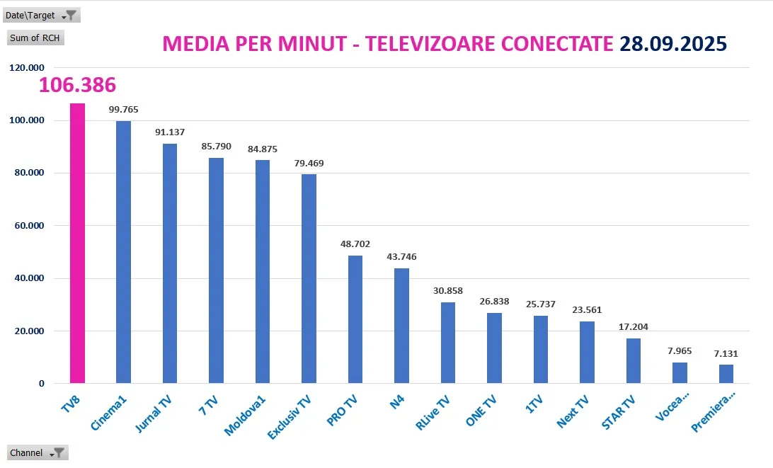 Vârful audiențelor a fost înregistrat între orele 19:00 și 20:00. Vorbim despre principalul buletin de știri al zilei. Audiențele arată că în ora de aur la TV8 erau conectate peste 414.000 de televizoare.