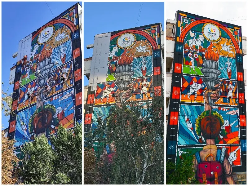 "В центре столицы есть здание, на котором недавно открыли мурал «Олимпийская мечта». Раньше это здание было закрыто рекламным щитом, но его сняли по просьбе местной администрации, чтобы нанести мурал.